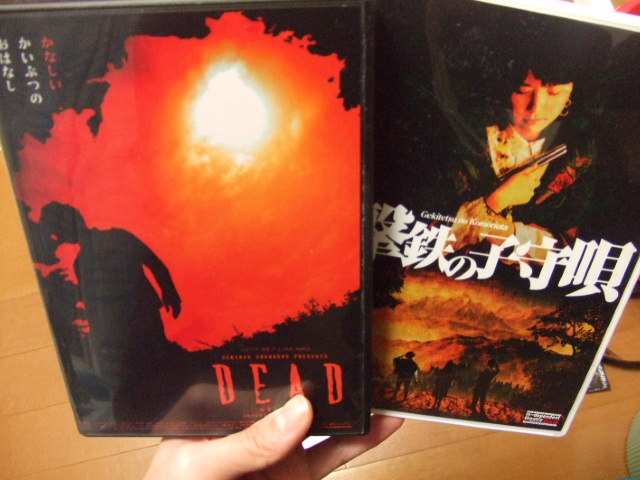 自分が出演していた作品、「DEAD」と「撃鉄の子守唄」。2枚買ったよ。お金ぶっとんだよ。